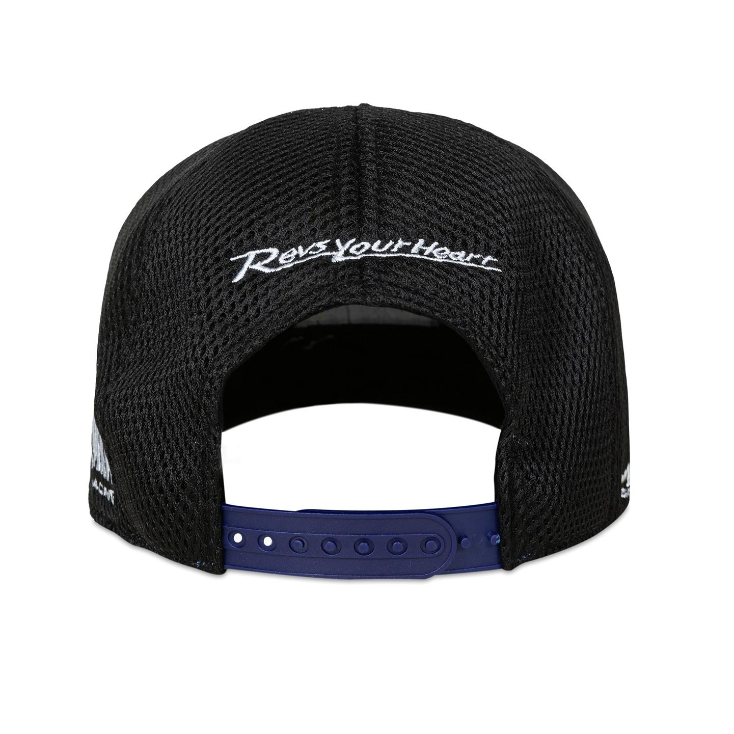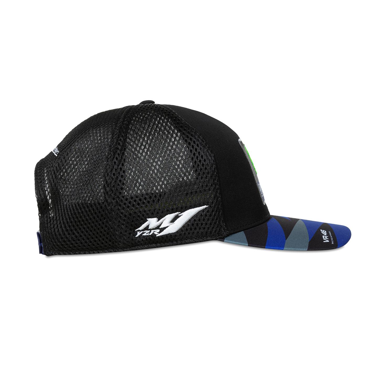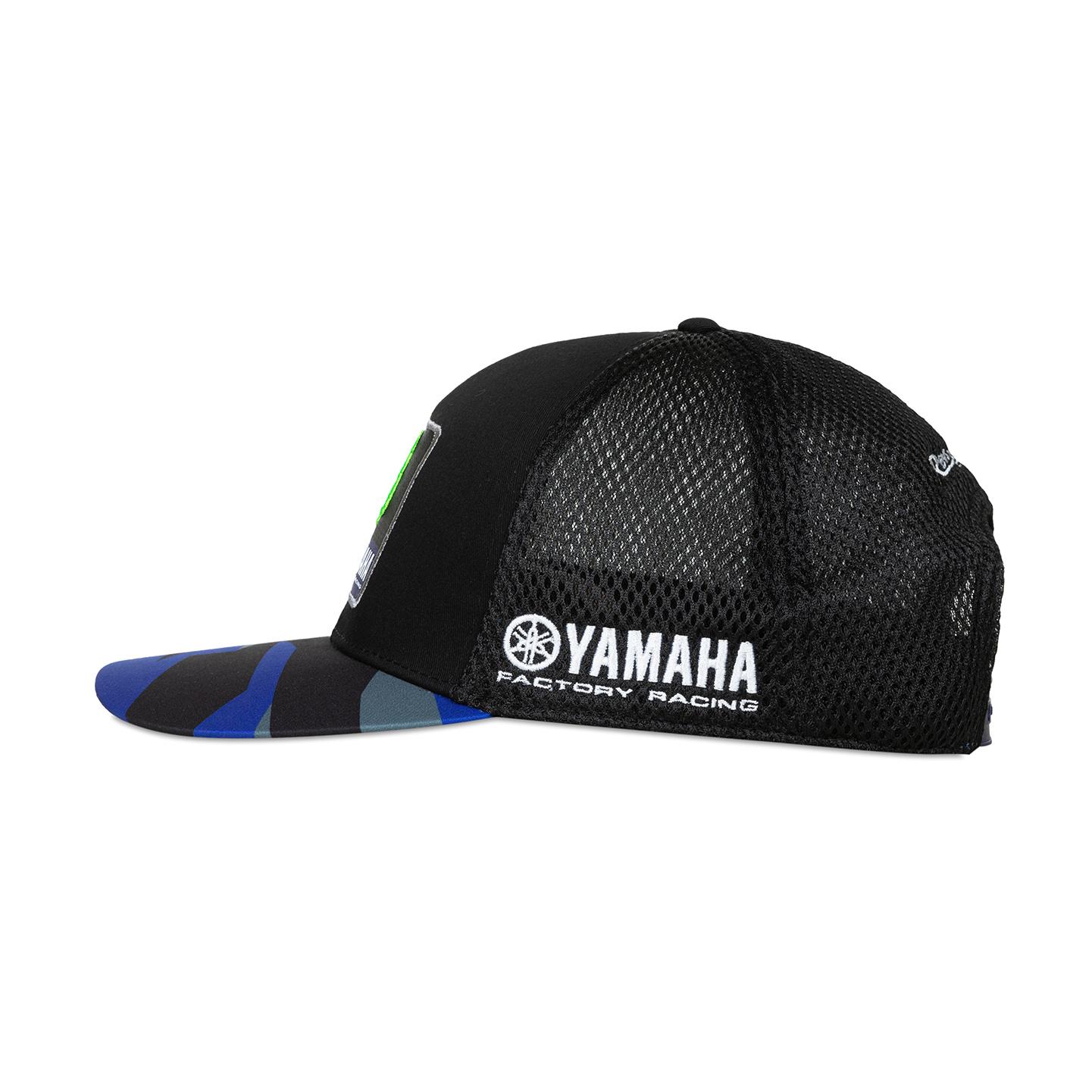 Replika kape Yamahine MotoGP momčadi Monster Energy za odrasle pruža udobnost i funkciju. Izrađena od mješavine pamuka i poliestera u omjeru 50/50 u Paddock Black boji s upečatljivim kamuflažnim uzorkom plave i sive boje nadahnutim izravno bojom motocikla M1 za 2023., ova je kapa udobnog uniseks kroja s prilagodljivom trakom plave boje. Kako bi se u potpunosti dovršio privlačan izgled, ova kapa ima ispisane i izvezene logotipe Yamaha Factory Racing, M1, Monster Energy i sponzora.